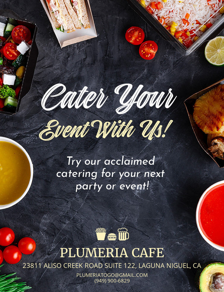 Cater your birthday party, holiday party, corporate events, wedding festivities and more!